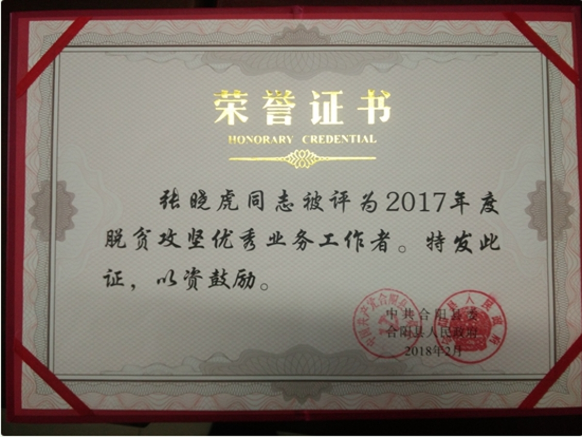功夫不负有心人,收获的喜悦让人干劲更足。在他的带领与努力下,合阳县健康扶贫工作领域取得了优秀的成绩。2017年,合阳县健康扶贫工作作为渭南唯一的代表,顺利通过了省委省政府检查并得到充分肯定,特色的健康扶贫“2+1模式”被《陕西日报》等媒体专版宣传报道,他本人先后在《陕西日报》、《渭南日报》、陕西省卫计委网站、陕西农村网、渭南市卫计局网站、合阳县政府网站上发表健康扶贫信息宣传报道200余条,获得了合阳县健康扶贫工作宣传报道在全市排名第一的好成绩。 2018年2月,他被县委、县政府评为“2017年度脱贫攻坚优秀业务工作者”,被合阳县卫生和计划生育局评为“2017年卫生和计划生育工作先进个人”,当被问及获得了这么多殊荣,有何感想时,他却说:“大家的一起努力才有了我们今天的成绩,作为一名党员,今后应该更加努力,不忘记党的历史使命与恩泽,不辜负民众的美好生活与期望。”