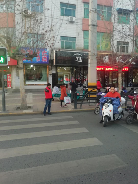 在现场,志愿者不畏严寒,身穿红色马甲,佩戴志愿服务小红帽,手拿指挥棒,认真地做行人和非机动车的文明交通劝导工作。我们的志愿者每天早上从7:30至8:30,下午从5:10至6:10。服务过程中,志愿者都能做到准时到岗、文明值勤、尽职尽责的引导行人、自行车、电动车在非机动车道行驶,阻止闯红灯、横穿马路等行为,督促通过人行横道的自行车、电动车下车推行,让行人自觉规范行为,树立较强的交通安全意识。